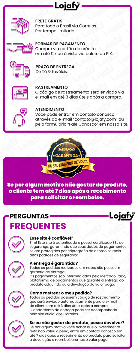 Compra Garantida. Saia satisfeito ou devolvemos seu dinheiro